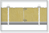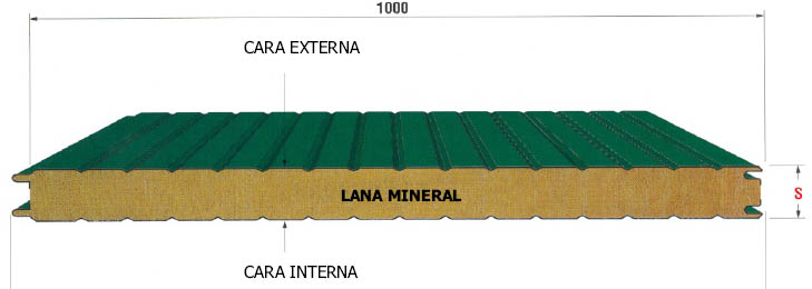 Sándwich de lana mineral con una densidad de 100kg/m3 y dos caras en lámina prepintada de grado alimenticio.